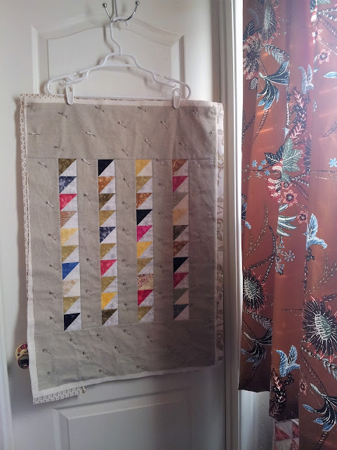 I easily justified my latest impulse since I really need some FMQ practice, and it happened that all the HST's required were waiting in my scrap bin. They're leftovers from both my Summer and Winter Gathering Quilts.