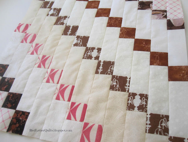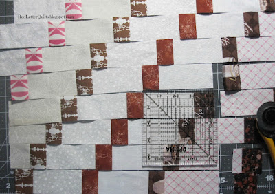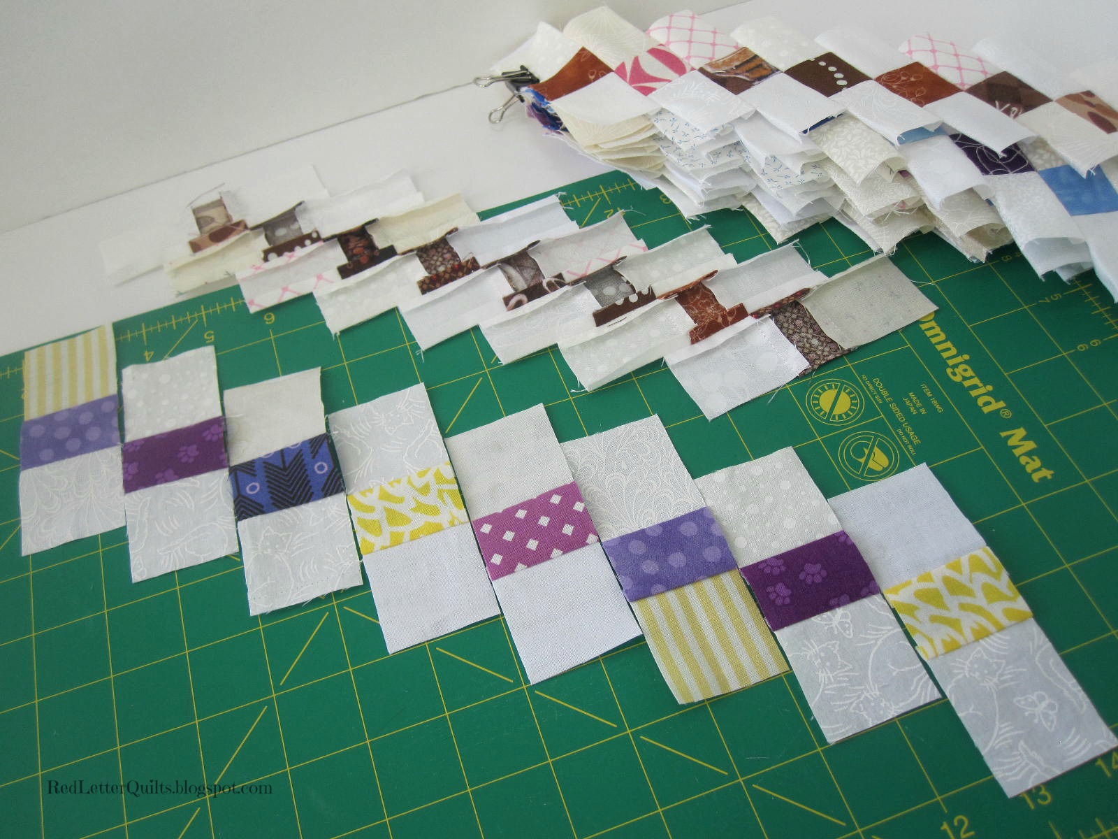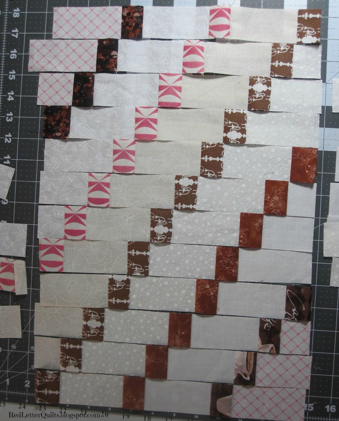 A note about block direction: So far, I am making all my blocks the same direction, sliding the strips to the right as I go up. I may switch later in the year, to make half of my blocks slide to the left)