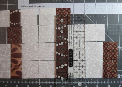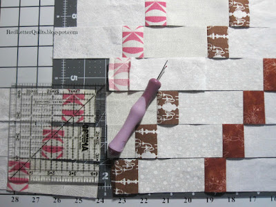 Align the pieced unit on your cutting mat, and cross-cut Twelve(12) 1.5" wide strips.