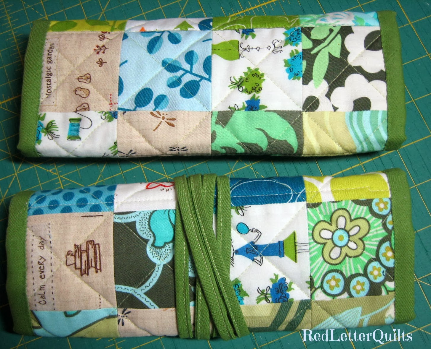 Haberdashery Fun. Since I wanted to make quilted rolls, I did not use interfacing, and I kept square corners. I did not have the same length zippers, so I used short ones for mine, and longer ones for Terri's. I haven't used that plastic stuff much, and I did not want to sew it on the topside of the zippers, so I topstitched along the outside edge of the zipper to attach the plastic, then I flipped it over and stitched along the edge of the plastic to stabilize it...