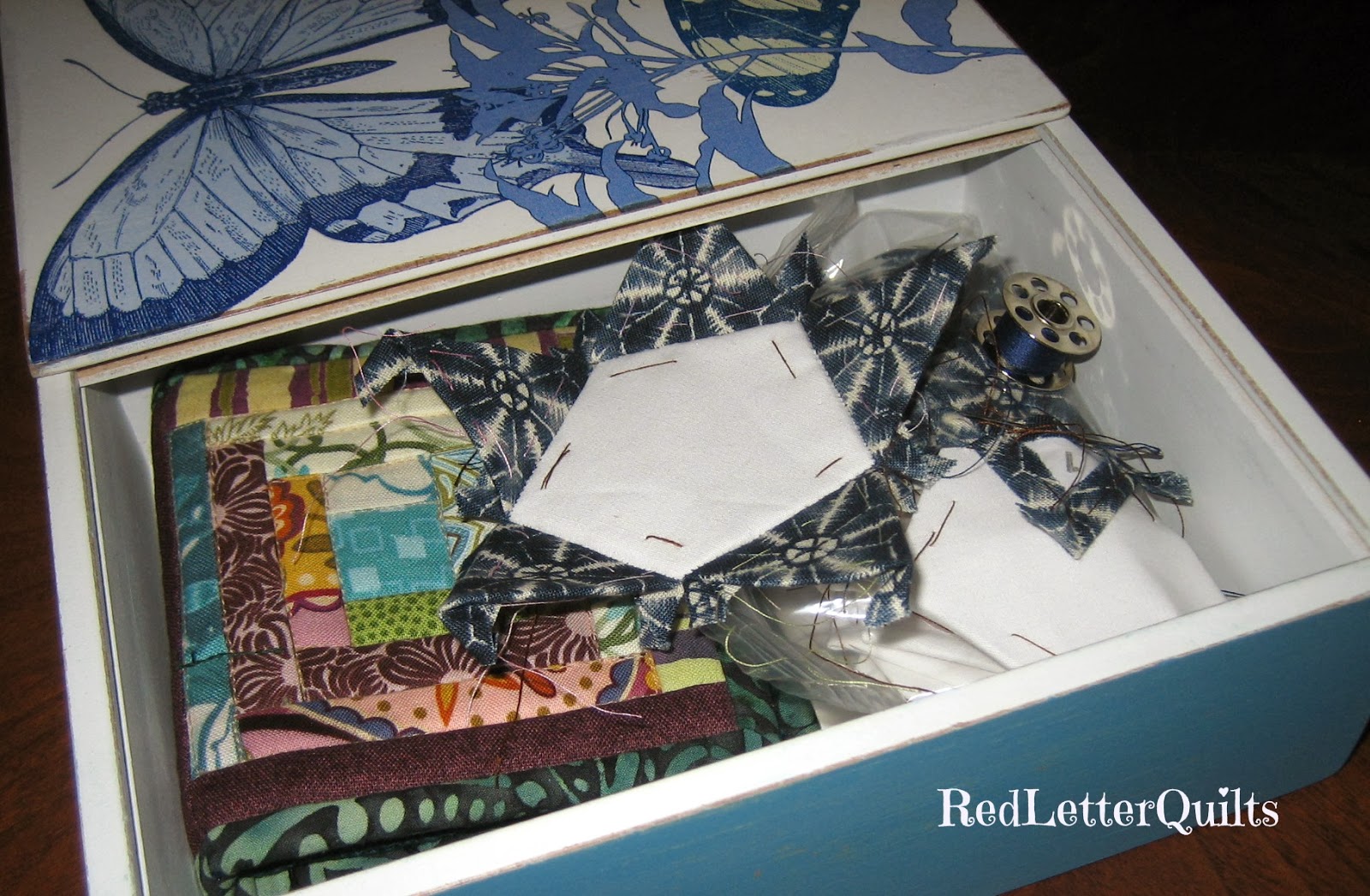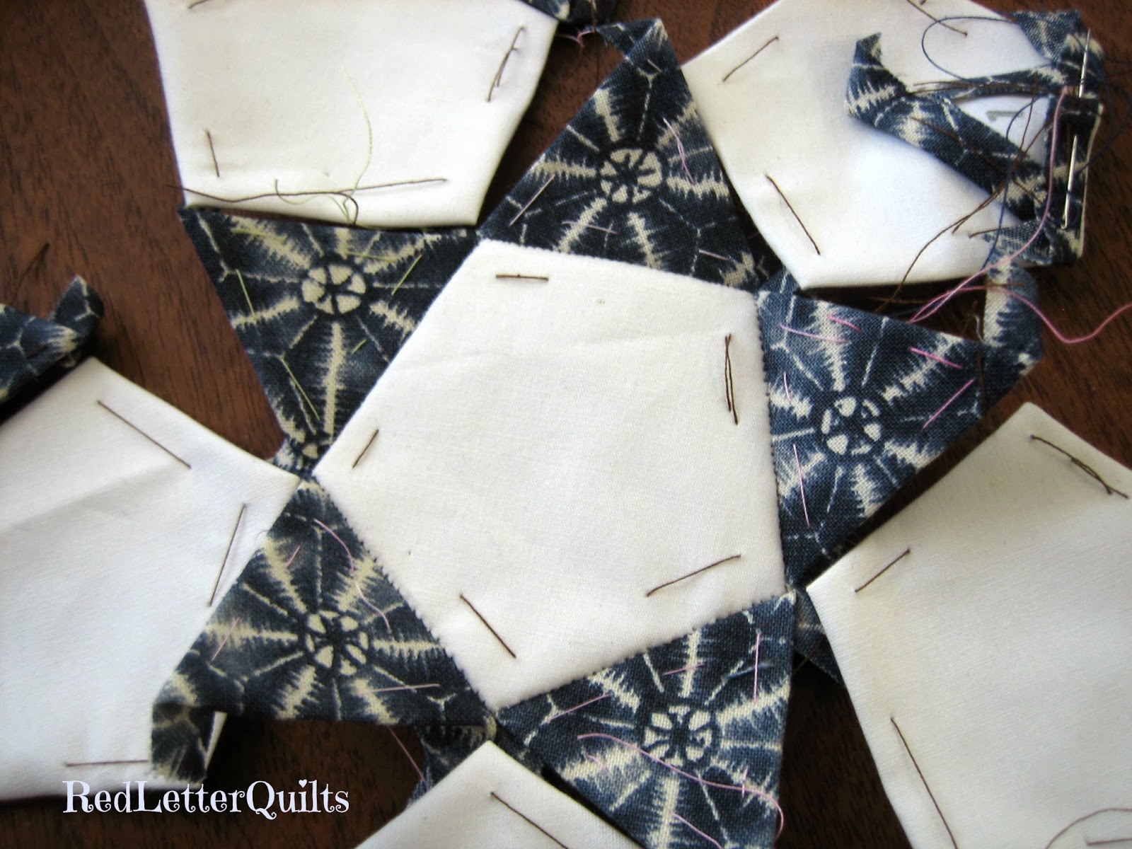 Once all the hand stitching was complete, I was able to get back to my January NewFO, inspired by the BookIt Linkup that I never joined (How do ya'll do it all anyway?!). The book I selected is Jinny Beyer's Patchwork Balls. Here is my progress so far,